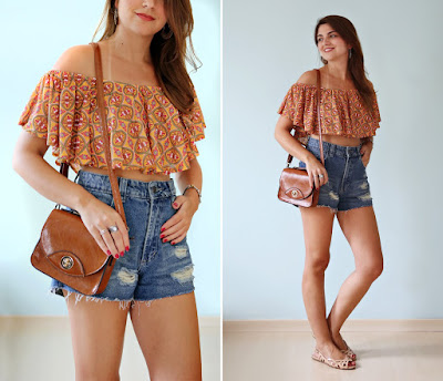 1- Blusa + Shorts: Ideal para os dias mais quentes! A combinação é a cara de quem gosta de estar por dentro das tendências, mas sem abrir mão de uma combinação clássica. Fica perfeito com uma resteirinha, sapatilha ou até um tênis bem confortável.