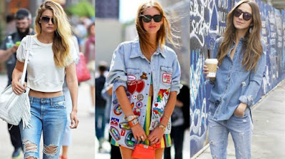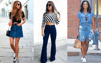 Além das calças, atualmente, os shorts, saias, camisas, jaquetas e vestidos jeans, tem ganhado público e a tendência forte é misturar peças no mesmo look, formando o All Jeans. Você pode usar uma camiseta jeans com uma calça em lavagem diferente; ou usar uma jaqueta com um short jeans, dependendo da ocasião dá pra fazer uma “brincadeira” bem legal com as peças jeans que você tem no seu guarda-roupa.